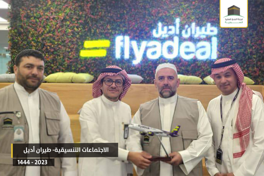 5- زيارة مقر شركة طيران أديل السعوديّة وتوقيع العقود الختاميّة مع إدارتها وذلك لنقل الحجّاج من (دبي والدّوحة والكويت وأربيل وغازي عنتاب)