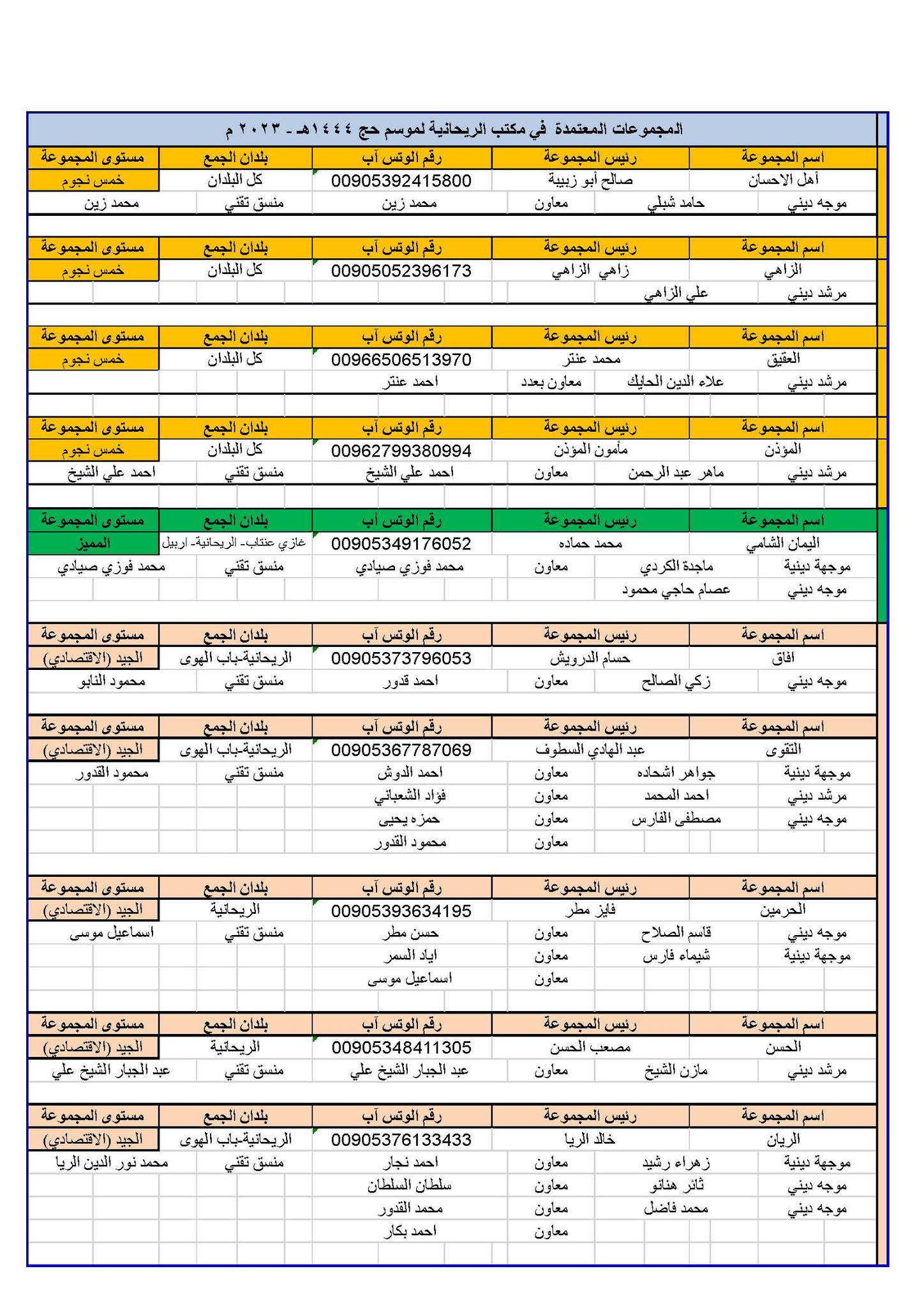 المجموعات المعتمدة في مكتب الريحانية لموسم 1444هـ – 2023م