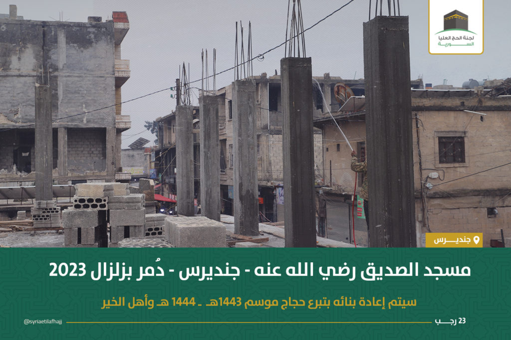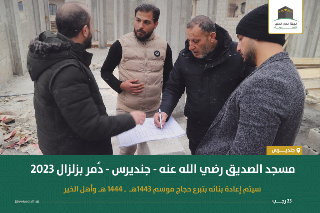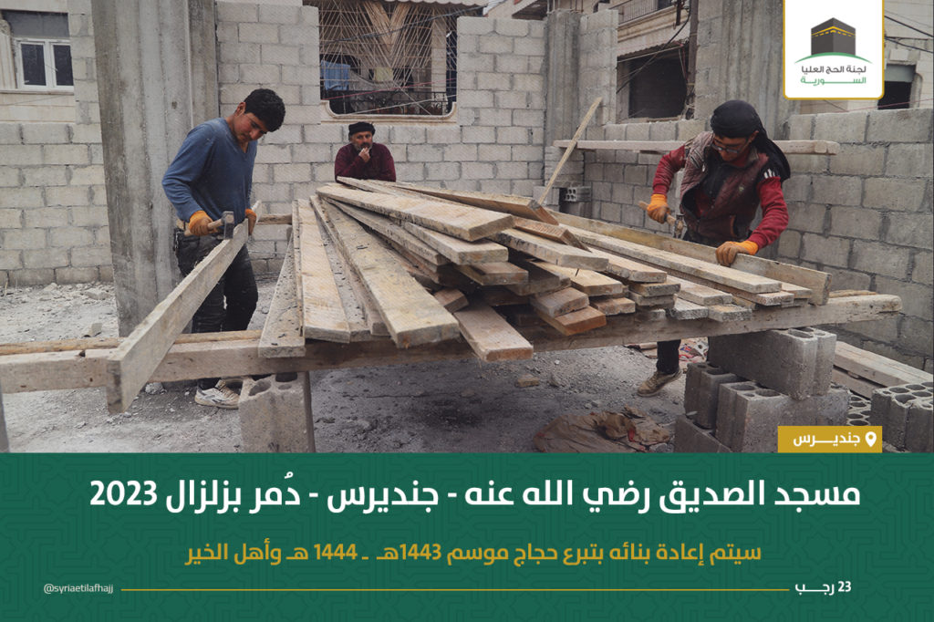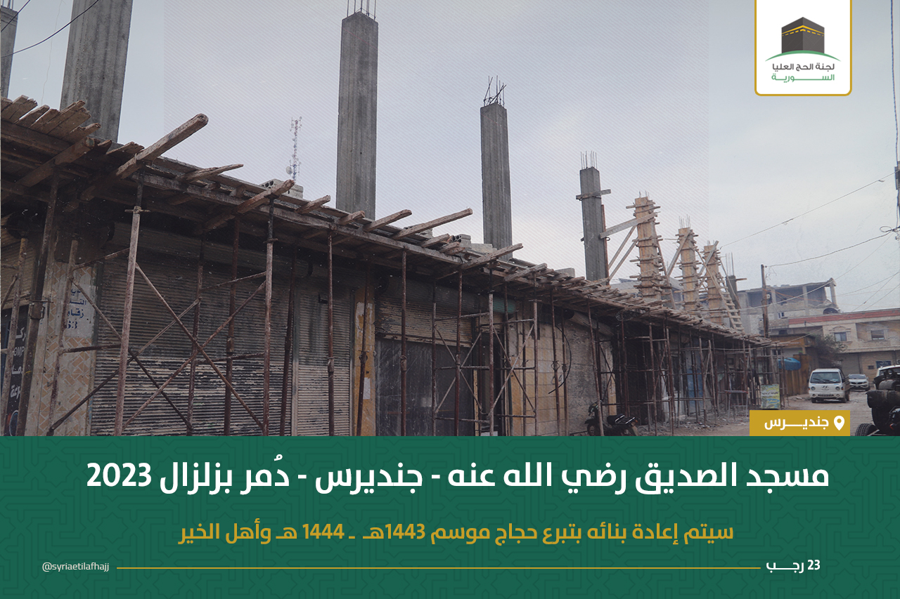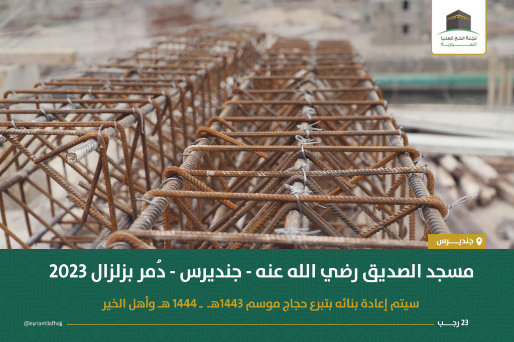 تستمر لجنة الحج العليا السورية بإعادة بناء مسجد الصديق مضافاً إليه بناء معهد شرعي مكوّن من ستة صفوف في ساحته الشمالية وذلك من تبرعات الحجاج الذين لم يستلموا المبالغ المعادة في موسمي حج 1443-1444 وفق القرارات المفصلة في منشور سابق :