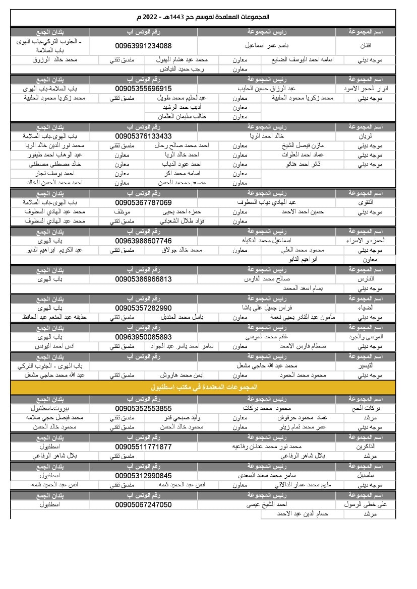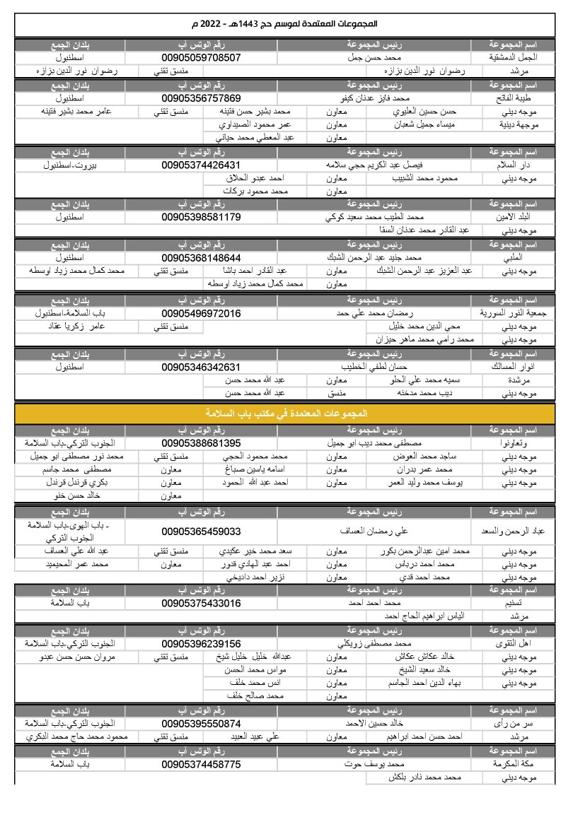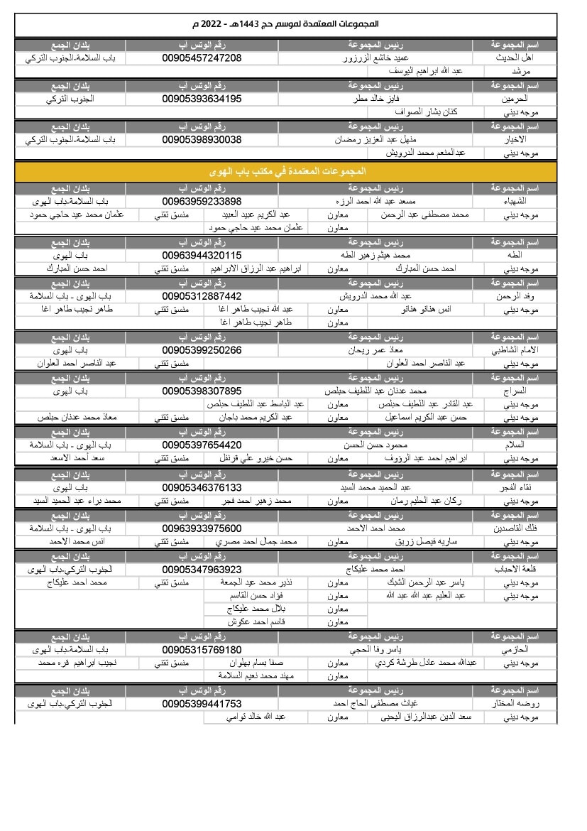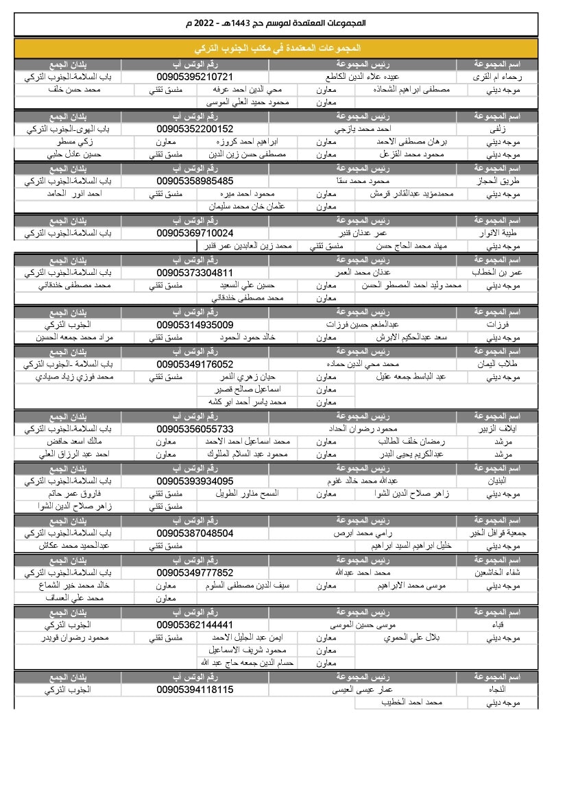 تشكيل المجموعات في مكاتب تركيا والشمال السوري لموسم1443