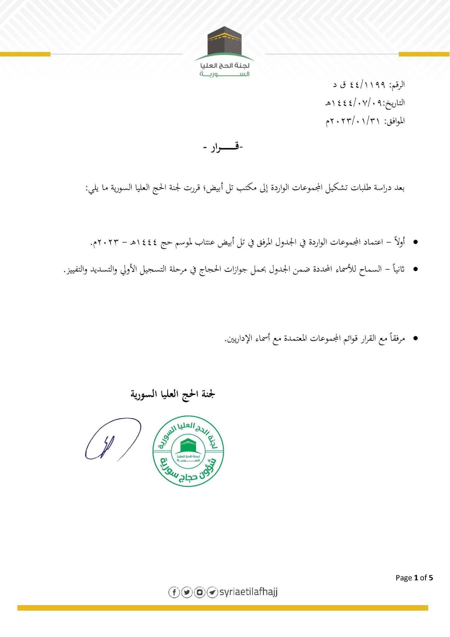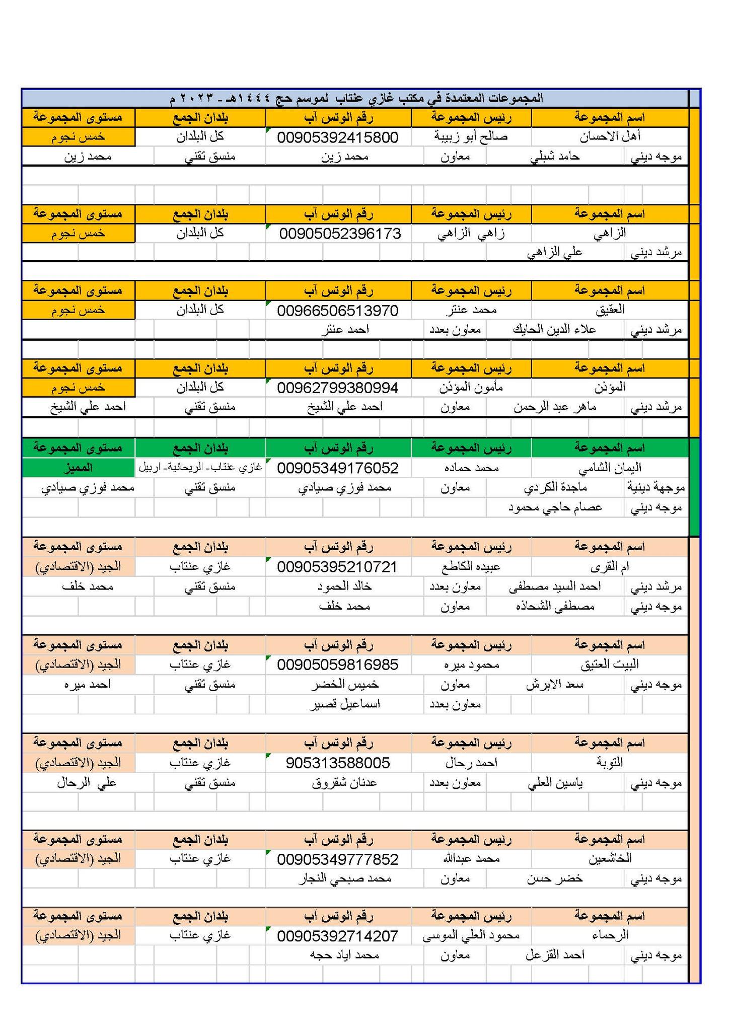 المجموعات المعتمدة في مكتب تل أبيض لموسم 1444هـ – 2023م