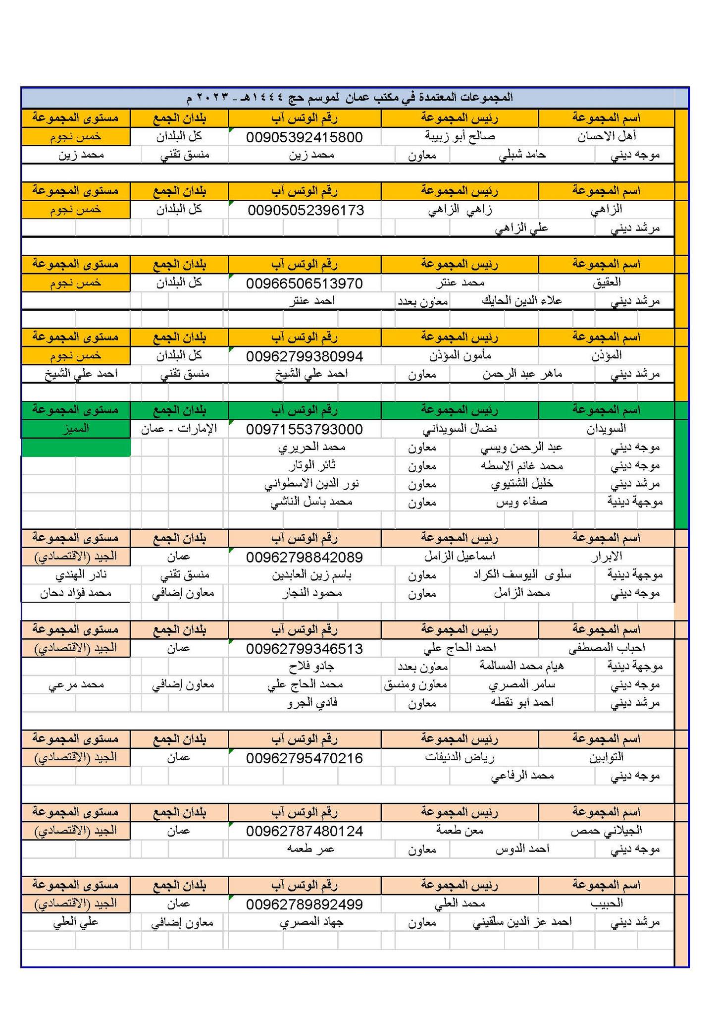 المجموعات المعتمدة في مكتب عمان لموسم 1444هـ – 2023م