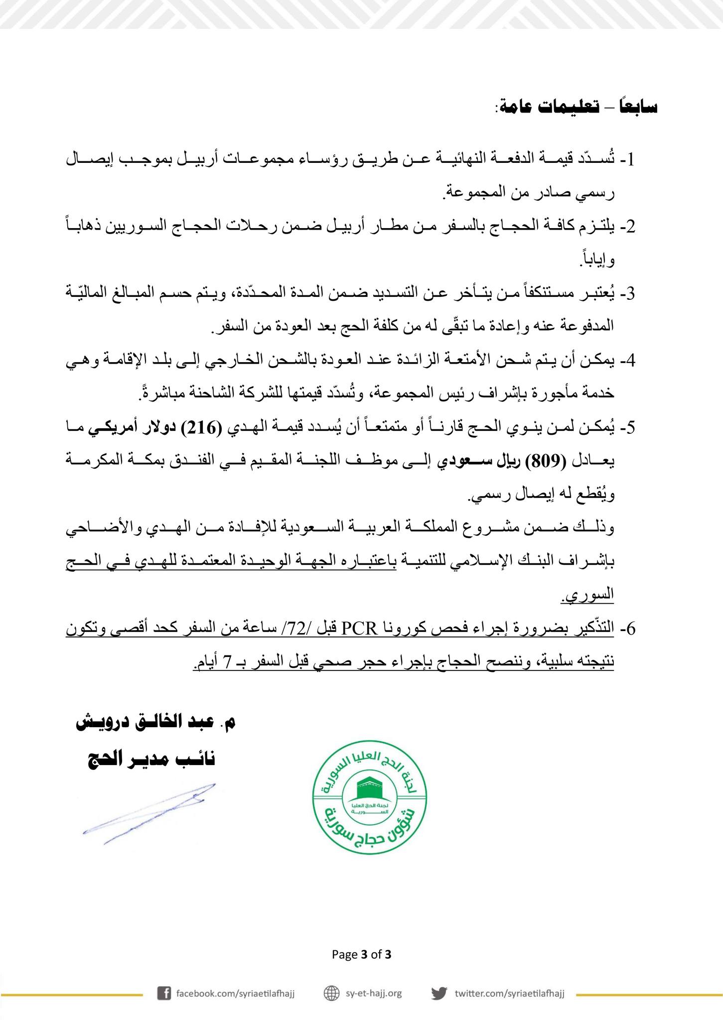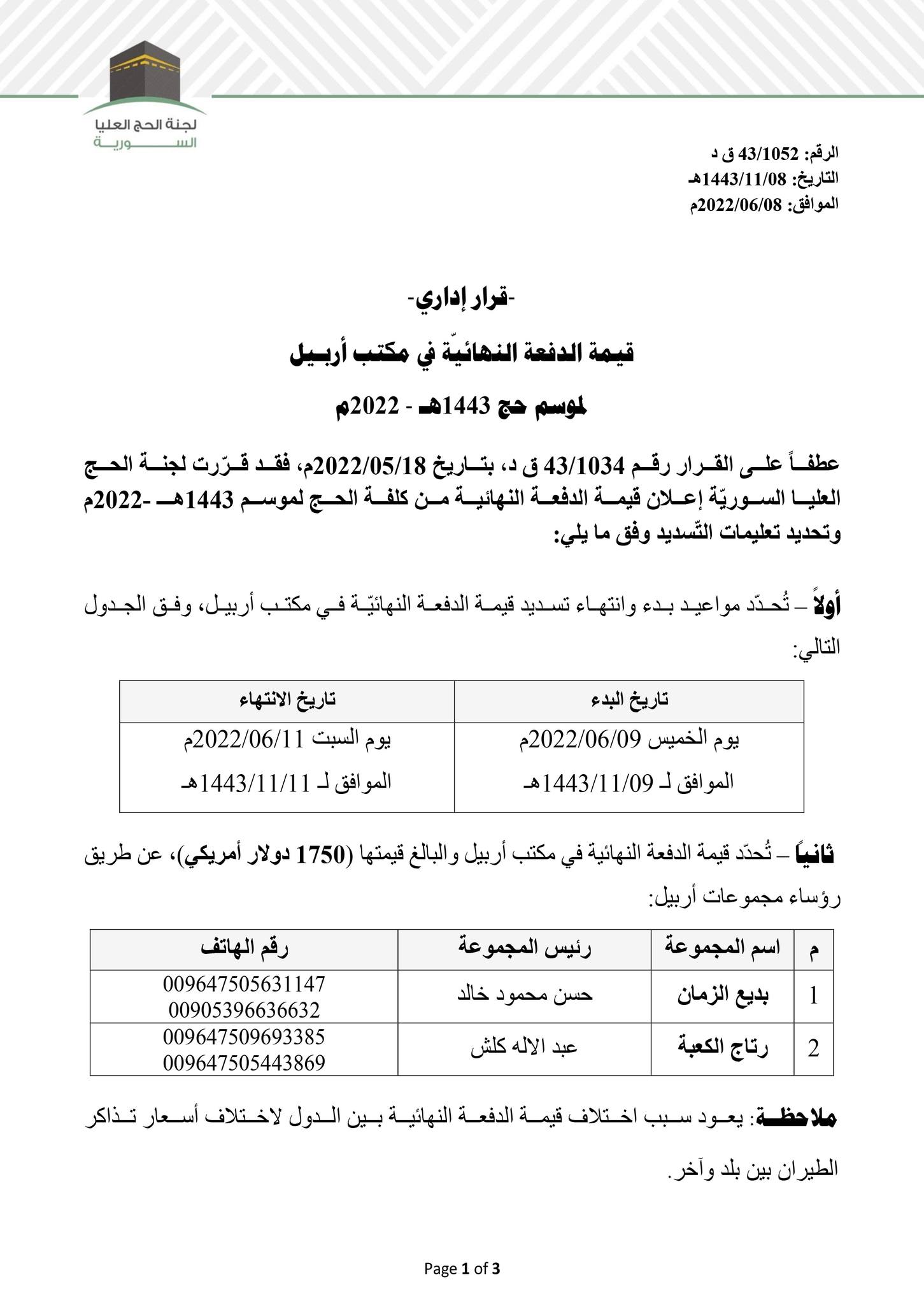 قيمة الدفعة النهائية في مكتب أربيل لموسم حج 1443هـ -2022م