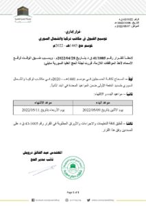القرارات والتعاميم توسيع القبول في مكاتب تركيا والشمال السوري -قرار إداري-توسيع القبول في مكاتب تركيا والشمال السوريلموسم حج 1443هـ – 2022م لاحقاً للقرار رقم 1005/41 ق د بتاريخ 28/04/2022م ، وبسبب ضيق الوقت لرفع قراءة المزيد » 7 مايو، 2022 لا توجد تعليقات